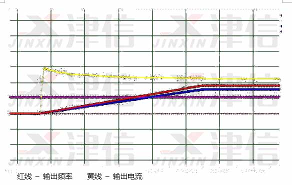 變頻器和電機參數設置完成后,開機啟動,下圖是加速時的轉速電流波型曲線,可以看出,電機加速及運行平穩,電流輸出正常。