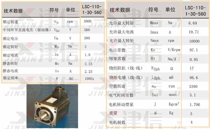 市場上有許多永磁同步電機的供應商,比如LUST、Phase、Lafert、中源等。以LUST永磁同步電機為例(型號:LSC-110-1-30-560),其具體參數如下: