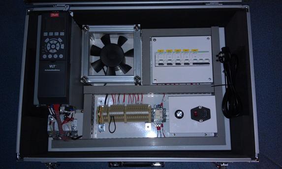 2013年1月,由上海津信變頻器公司和贏創德固賽特種化學有限公司共同研制開發了一款以丹佛斯變頻器為核心部件,專為模擬現場風機水泵進行通訊控制而設計的通訊測試箱(如下圖所示)。