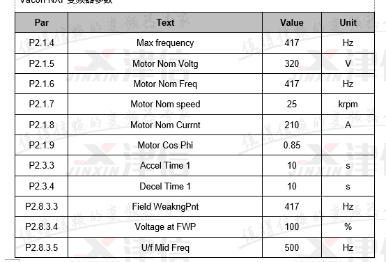 4) 設(shè)定變頻器的P2.1.5到P2.1.11的電機參數(shù)。